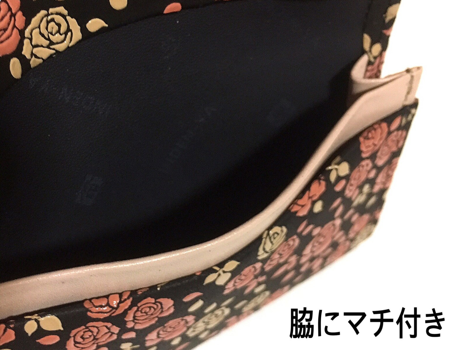 7×11×13cm 名刺入れ(めいしいれ・メイシイレ) 名刺ポケット1・ポケット2・脇にマチ付き 二色の漆でローズ模様を彩った印傳屋オリジナルブランド「かぐわ」。