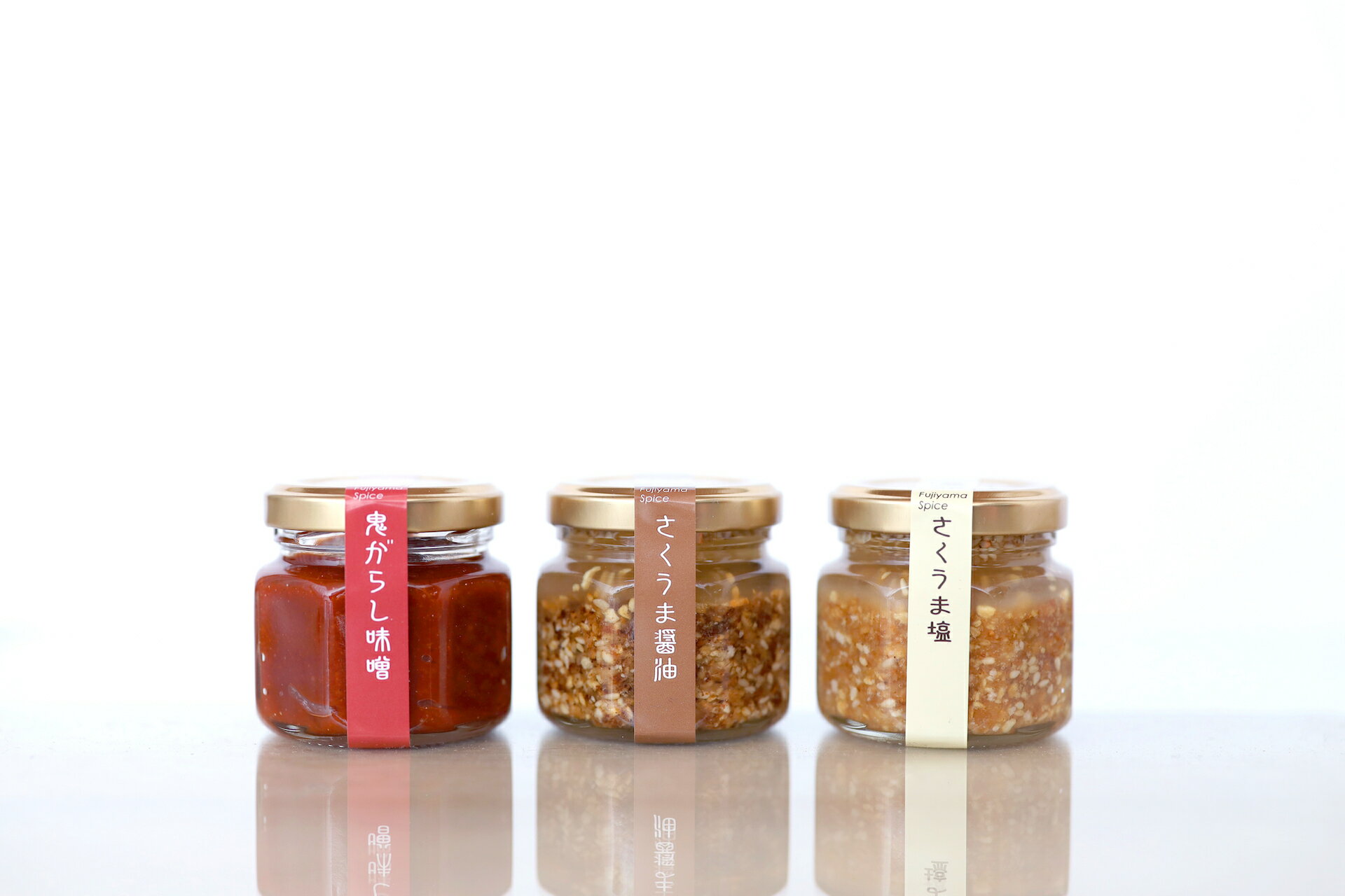 品名 「万能調味料 さくうまシリーズ・23時は大人のジャム」セット 商品概要 万能調味料「さくうま醤油」「鬼がらし味噌」「さくうま塩」と 「23時は大人のジャム」をセットにしました。