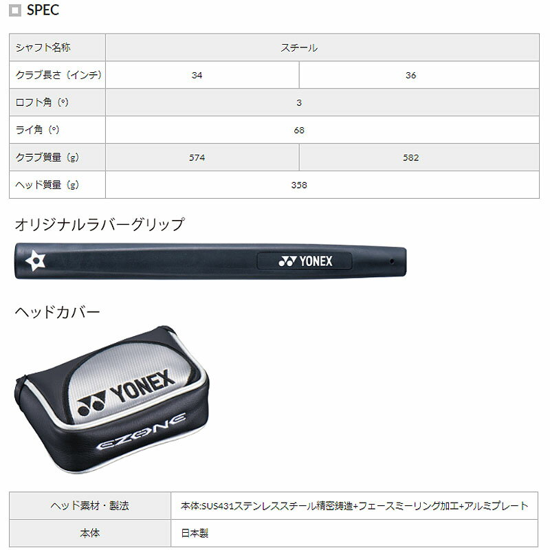 ヨネックス イーゾーン パター TP-F1B スチールシャフト (34" / 36") ヘッドカバー付き YONEX EZONE Putter Steel Shaft【AW】 ◆在庫につきまして◆ こちらの商品は、お取り寄せになる場合がございます。