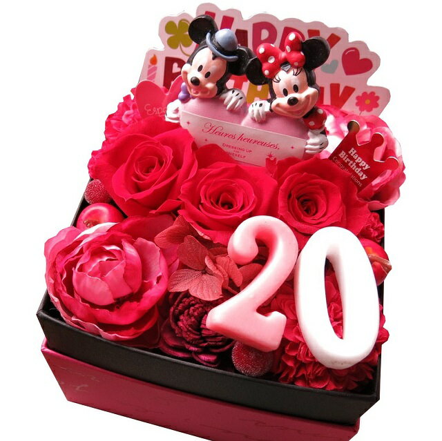 【あす楽 翌日配送 20周年 プレゼント】20歳 お祝い 記念日 数字20入り 赤バラ入り 花束風 ギフト 箱を開けてサプライズ ミッキー ミニー ハート入り ボックス プリザーブドフラワー ◆ご希望数字でお作り致します