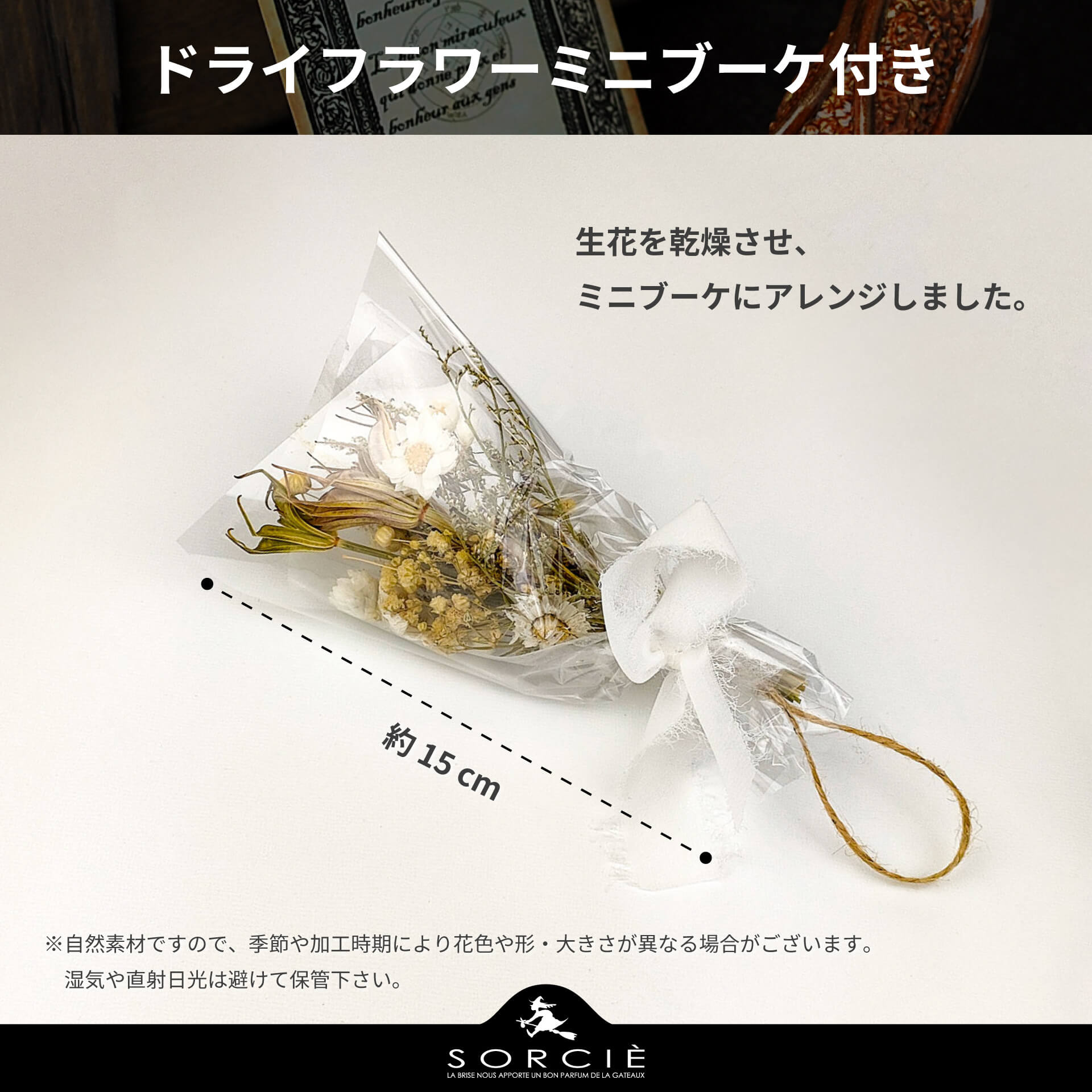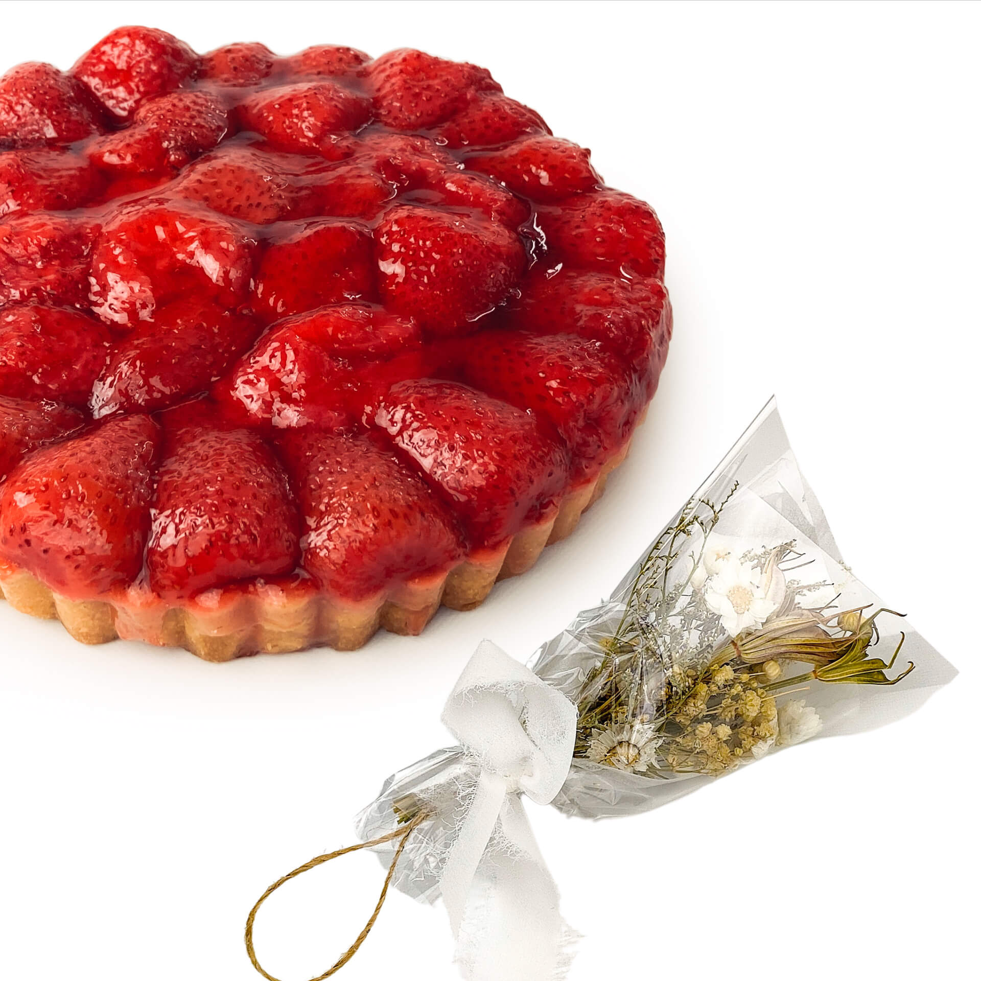 魔法洋菓子店ソルシエ 苺タルト5号 & ドライフラワーミニブーケ (ナチュラル) ギフトセット