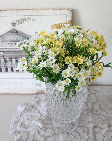 ミニデージー (ホワイト・イエロー) 小花 造花 シルクフラワー アーティフィシャルフラワー インテリアフラワー ブーケ 花束 おしゃれ 可愛い ナチュラル