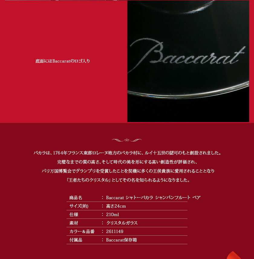 【名入れ・メッセージ彫刻可能】 バカラ グラス シャトーバカラ シャンパンフルート ペア 2個セット クリスタルガラス コップ シャンパングラス ペアグラス BACCARAT チューリップグラス おしゃれ 2客 食器 結婚祝い プレゼント 贈り物 ブランド 刻印 新品 送料無料