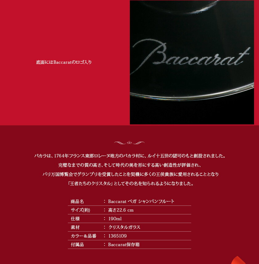 【名入れ】【正規紙袋 無料】 バカラ グラス 名入れ シャンパングラス Baccarat 食器 ベガ シャンパンフルート 1客 13651092022 通販 ギフト プレゼント 実用的