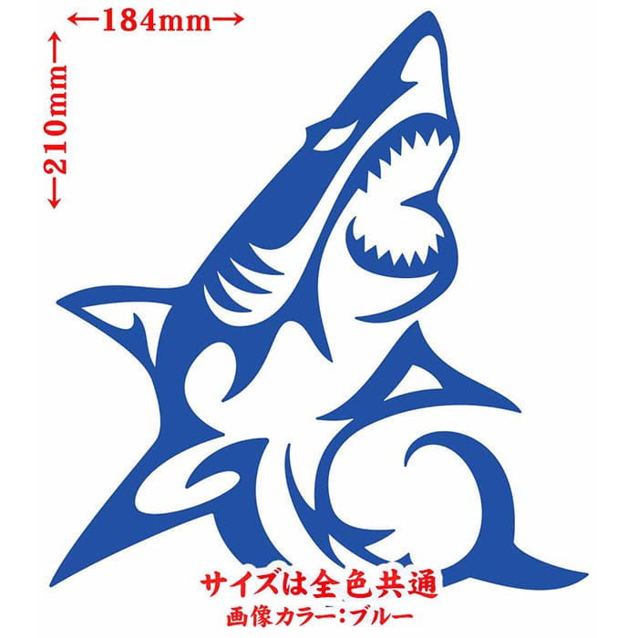 \クーポン有/ シャーク shark サメ 鮫 トライバル 8(右向き) サイズL カッティングステッカー 車 バイク かっこいい おしゃれ タンク カウル ボックス ボンネット スーツケース グラフィック 防水 耐水 アウトドア 切り文字 デカール 転写 シール 全12色(210mmX184mm)