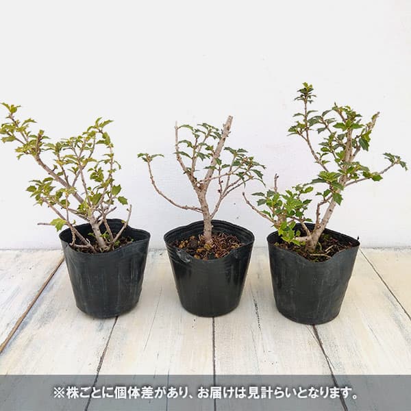 3号ポット入り、樹高約10〜20cm前後の苗です。