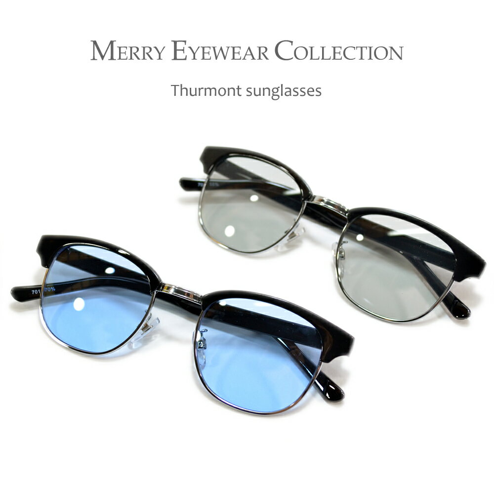 【全3色】 伊達メガネ サングラス クラブマスタータイプ ブロウ サーモント 薄い色 ライトカラーレンズ メンズ レディース カラーレンズサングラス