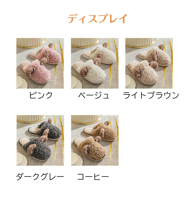 商品名:ルームシューズ 材 質:ポリエステル カラー:ピンク、ベージュ、ライトブラウン、ダークグレー、コーヒー サイズ:36-37(23cm~23.5cm)、38-39(24cm~24.5cm)、40-41(25cm~25.5cm)、42-43(26cm~26.5cm)、44-45(27cm~27.5cm) 原産地:中国 【注意事項】 1商品写真はできる限り実物の色に近づけるよう加工しておりますが、 お客様のお使いのモニター設定、お部屋の照明等により実際の商品と色味が異なる場合がございます。