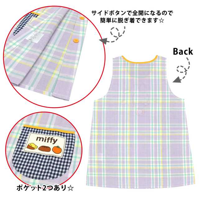○ カラーバリエーション ○パープルピンクミッフィー miffy エプロン 前掛け 男女兼用 メンズ レディース 大人 LL 3L 大きい アップリケ 刺繍 プリント 保育士 保育園 幼稚園 学校 調理 料理 家事 かわいい ェック ギンガム ポケット サイドボタン かぶる○ 【ネコポス送料無料】エプロン 大きいサイズ ラン型 キャラクター ミッフィ 大人 保育士 サイドボタン☆