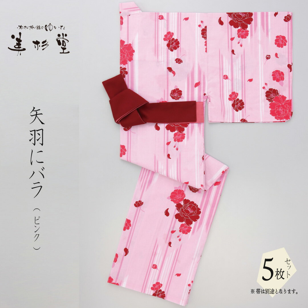 【5枚セット】カラー仕立浴衣 矢羽にバラ・ピンク【業務用】【旅館・ホテル用館内着浴衣】【寝巻き浴衣】