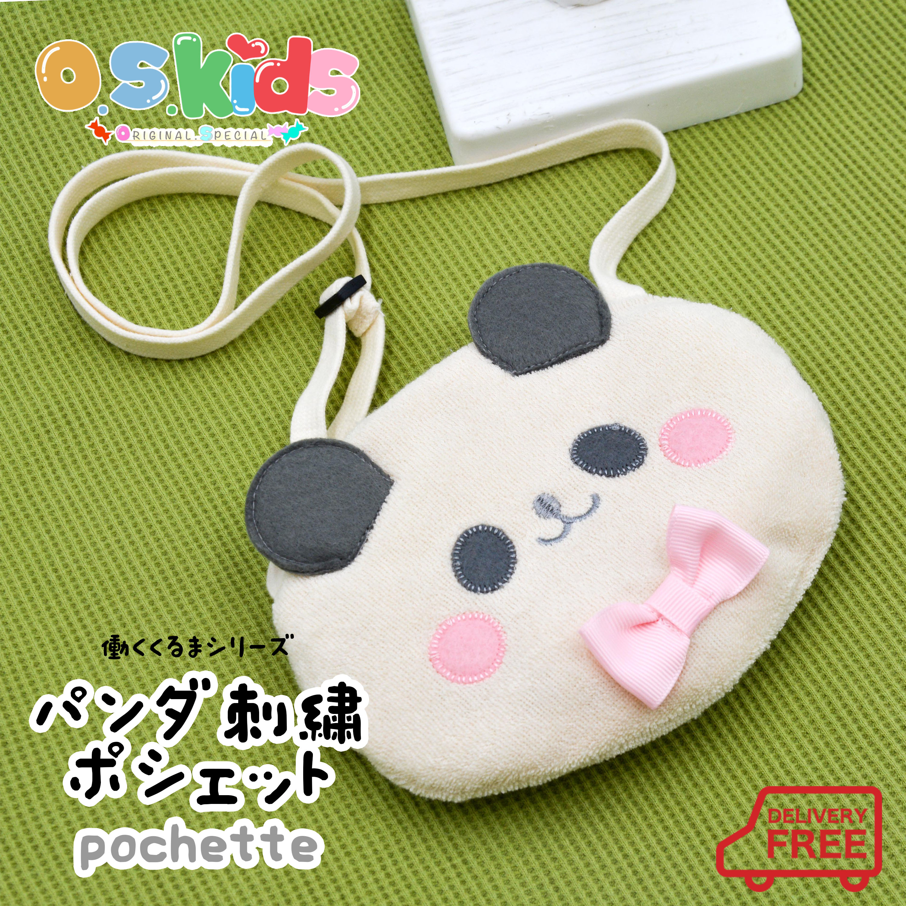【送料無料】 O.S.KIDS パンダシリーズ パンダ刺繍ポシェット パンダ 刺繍 ポシェット ショルダー バッグ 女の子 男の子【オフホワイト】【os206-350】宅込