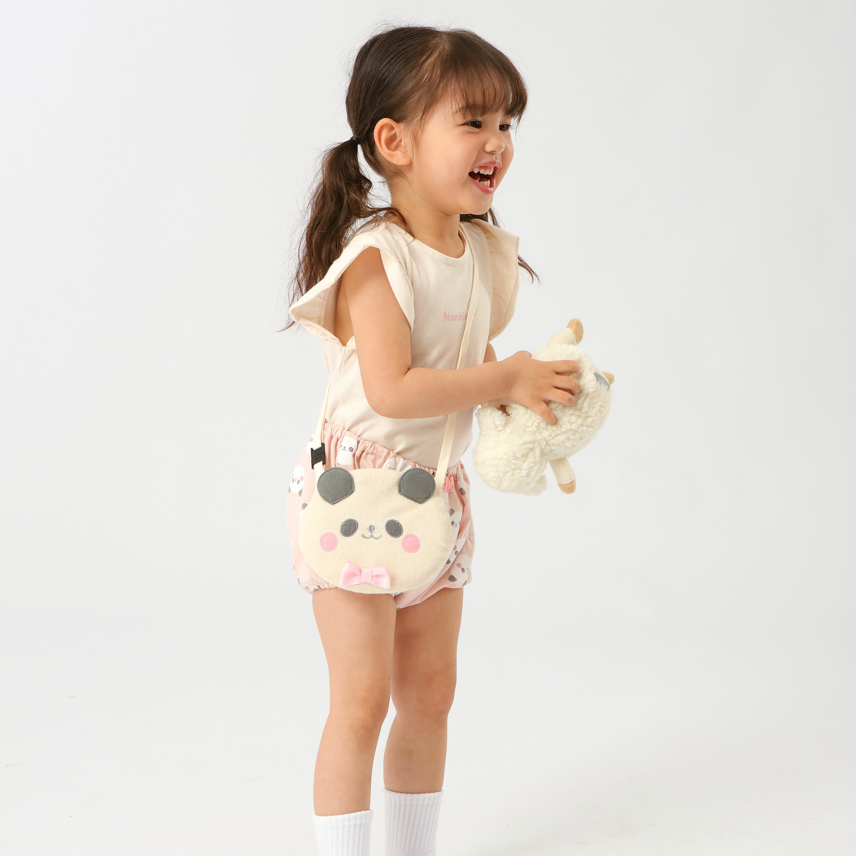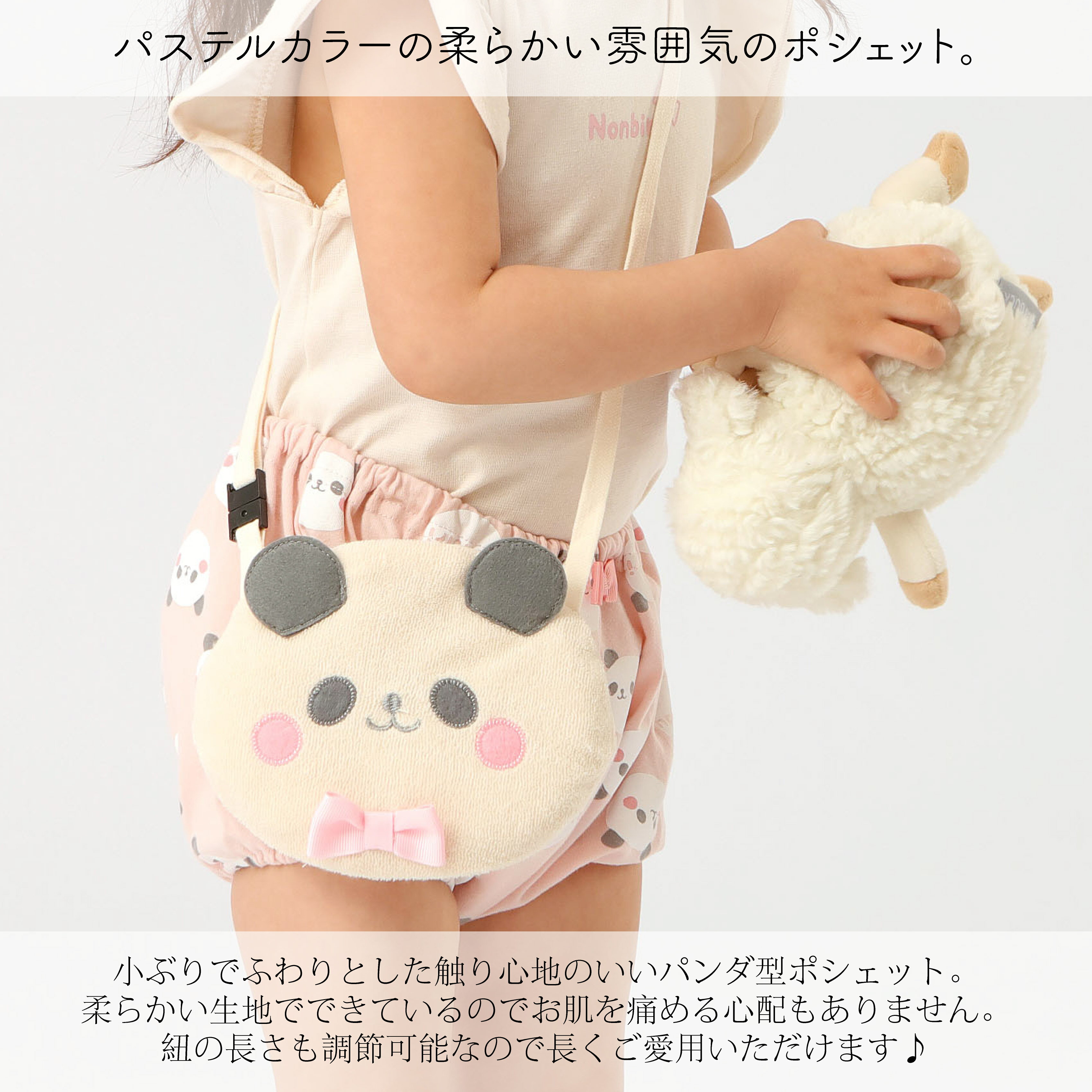 小ぶりでふわりとした触り心地のいいパンダ型ポシェット。