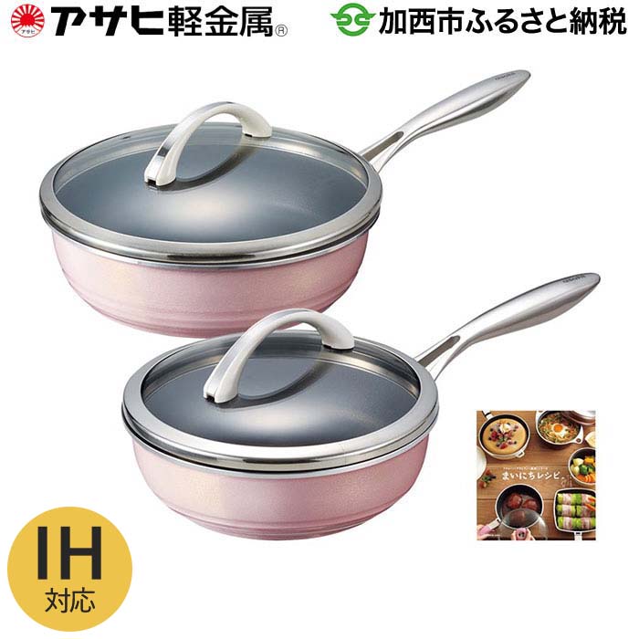 【ふるさと納税】オールライト(26)(22)セット/シャンパンピンク アサヒ軽金属工業 【雑貨・日用品・食器・フライパン】 ■転売等を目的とした寄付のお申出は固くお断りしております■丁寧な手造り製法から生まれる材質「多孔質アルミ」のやわらかい火のあたりと高い蓄熱性に加え、≪ヒートダム構造≫から生まれる内底面へのすばやい熱伝導で炒め物や焼き物調理に特化した、絶妙な焼き加減を可能にします。
