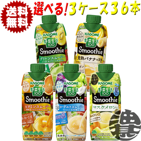 カゴメ 野菜生活100 スムージー Smoothie[グリーン・豆乳バナナなど]330ml紙パック×36本[12本×3箱] 選り取り[賞味期限:4ヶ月以上]北海道・沖縄・離島は送料無料対象外【4〜5営業日以内に出荷】【3ケース選んで送料無料】