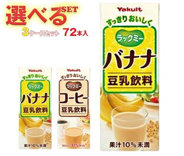ヤクルト ラックミー 選べる3ケースセット 200ml紙パック×72(24×3)本入| 送料無料 選べる 豆乳 バナナ コーヒー