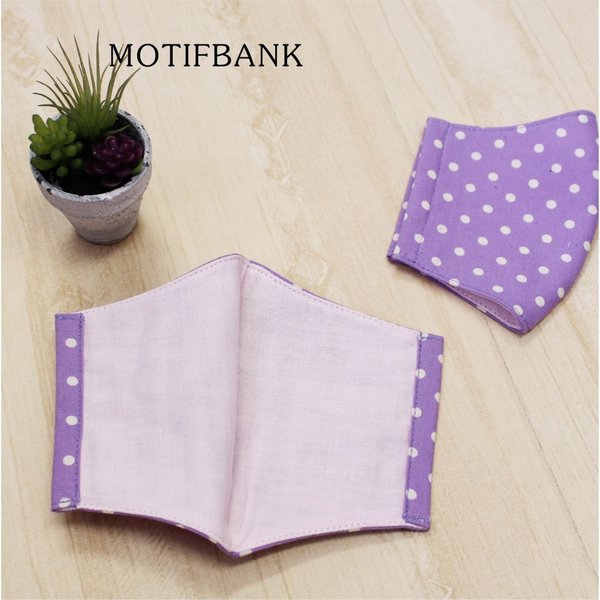【S】 立体マスク 子供用サイズ 裏:Wガーゼ 表:パープル水玉(綿100%)