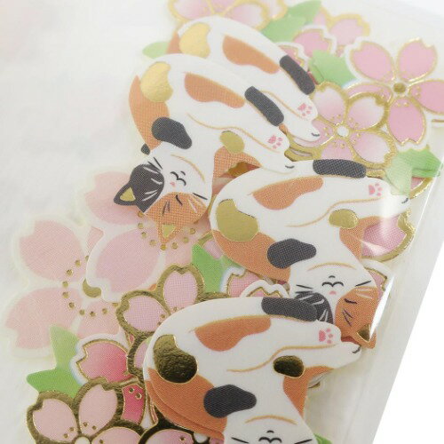 フレークシール 和紙 はんなり シール ほんのきもち 桜と猫 アクティブコーポレーション 5柄30枚入り 和雑貨 メール便可 マシュマロポップ