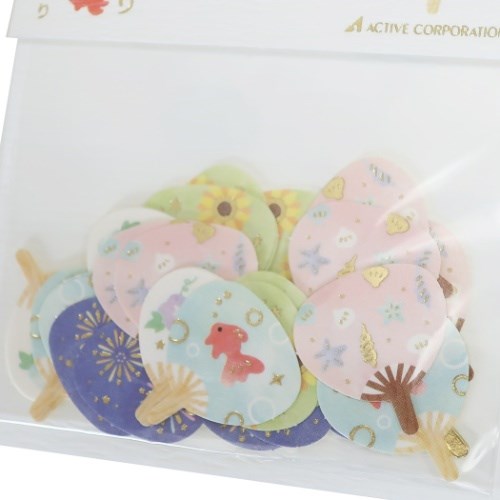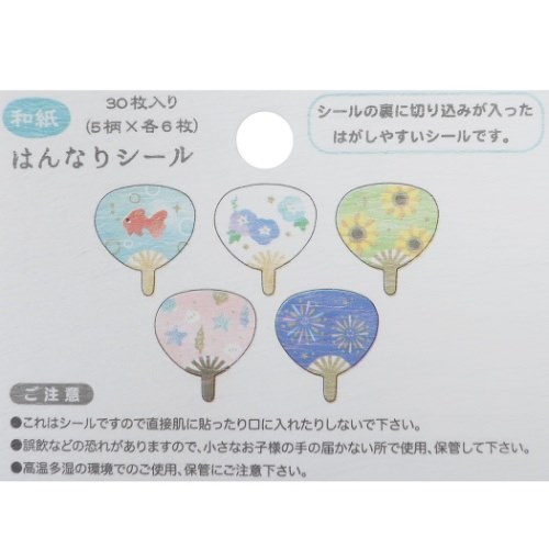 フレークシール 夏色 和紙 はんなり シール うちわ アクティブコーポレーション 5柄30枚入り 和雑貨 メール便可 マシュマロポップ