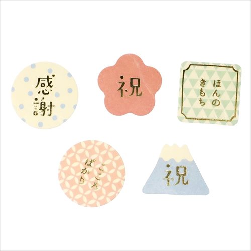 和紙はんなりシール SF-128 感謝 フレークシール アクティブコーポレーション 5柄30枚入り 日本製 和 雑貨 グッズ メール便可 マシュマロポップ