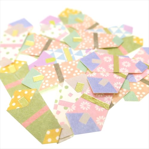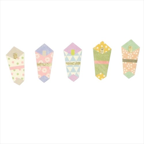 こちらはとってもかわいい【和紙フレークシール】ノートや手帳に貼ったり、手紙の封函や、ラッピングなどなどいろいろ使える!!5デザイン各6枚の計30枚がセットになっています。