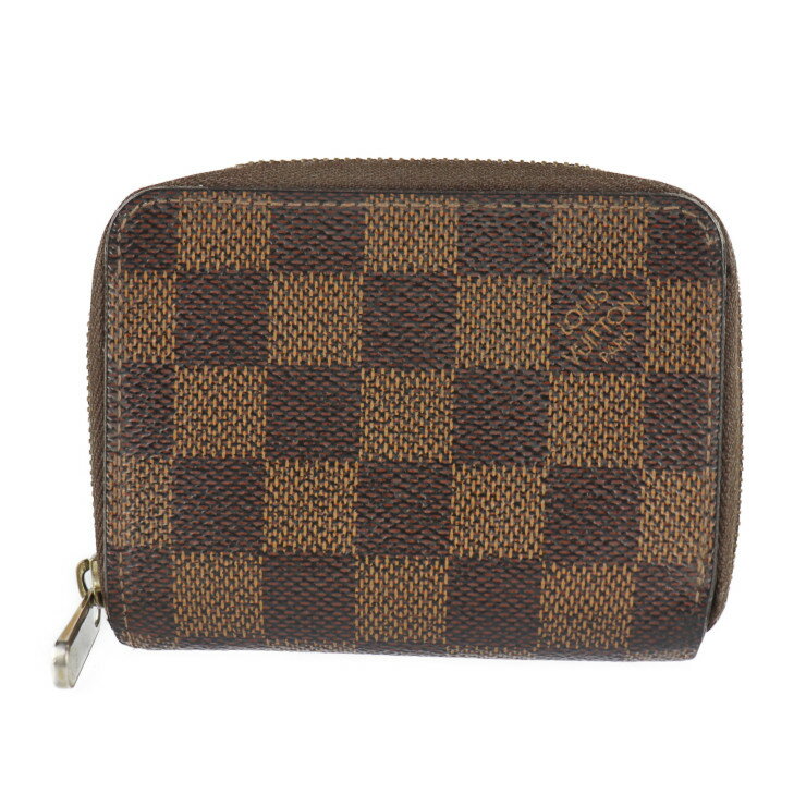 LOUIS VUITTON ルイ ヴィトン ジッピー コインパース コインケース N63070 ダミエキャンバス レザー エベヌ ブラウン系 ゴールド金具 ラウンドファスナー 小銭入れ 財布【本物保証】【中古】