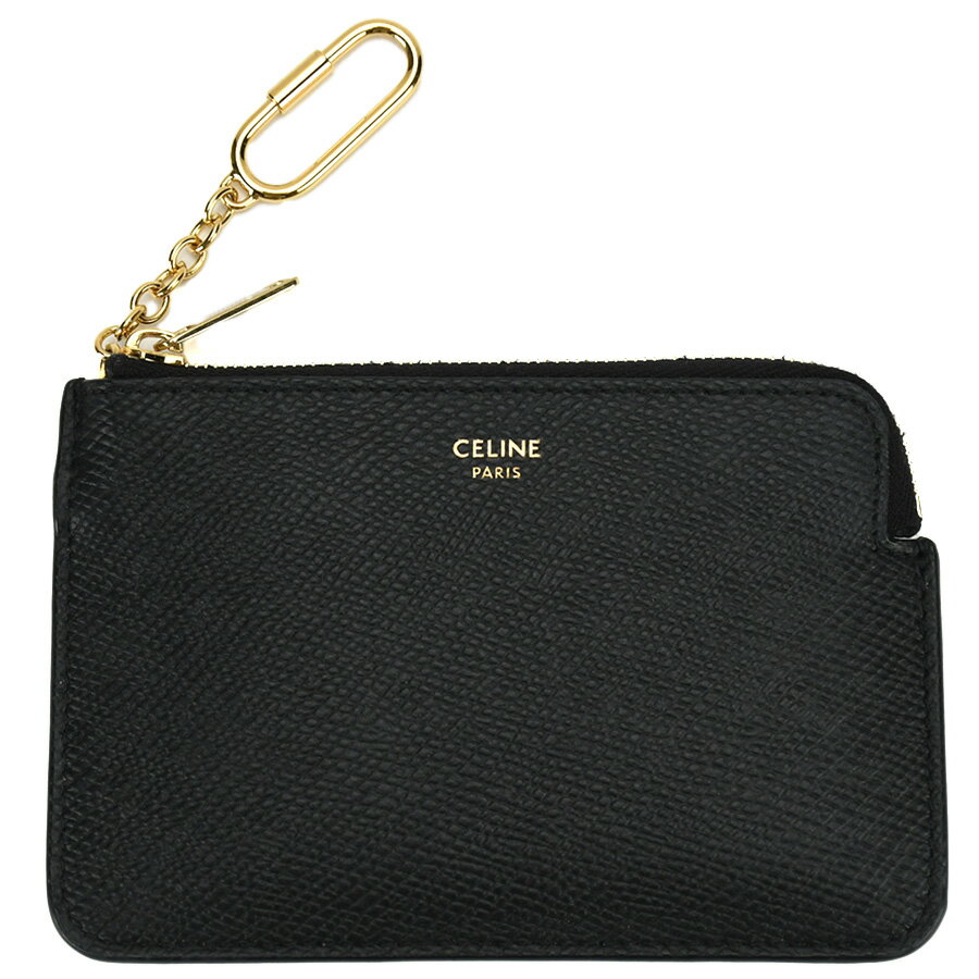 【クーポン&ポイント5倍】 セリーヌ CELINE フック付きコイン カードポーチ 10B773 コインケース カードケース キーケース コンパクトウォレット 黒 ブラック レザー【新同品】
