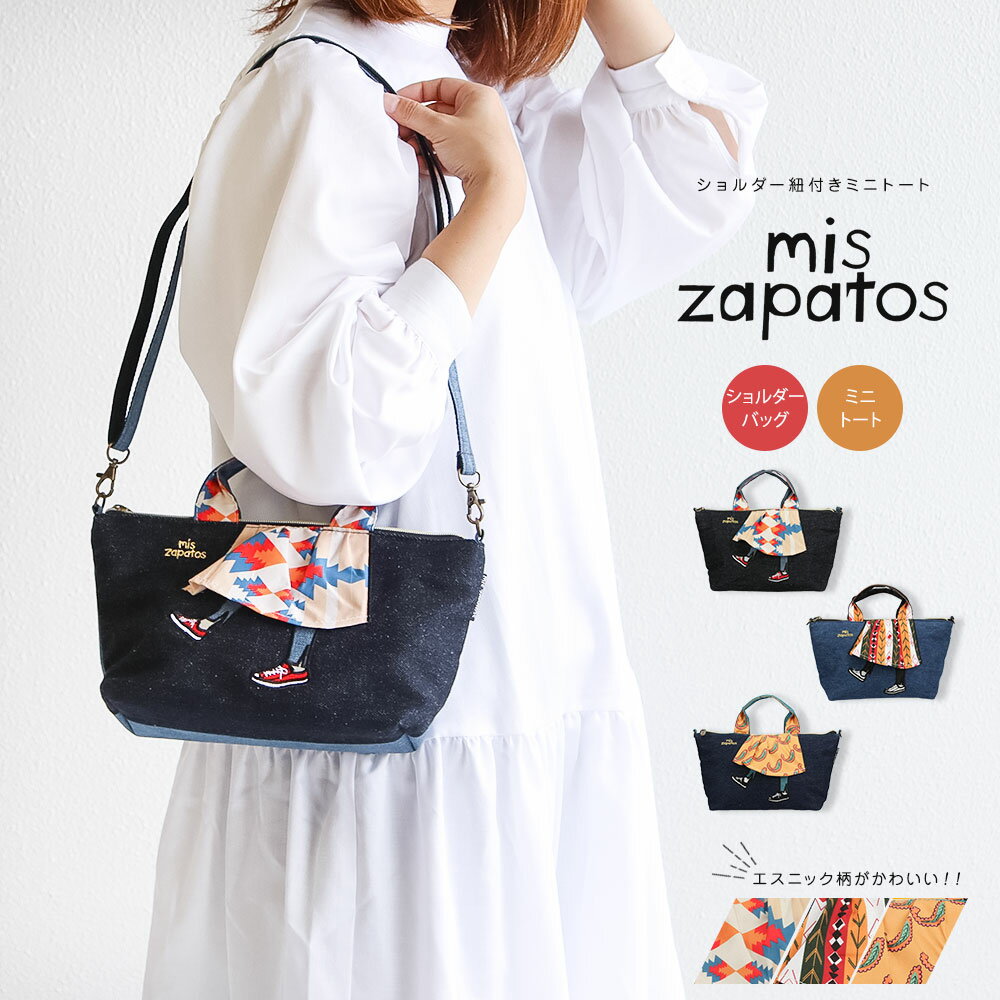 ミニショルダーバッグ レディース 斜めがけ かわいい 2way ショルダーバッグ レディース 小さめ ミニトート ファスナー ランチトート サブバッグ ワンマイルバッグ ミスサパト mis zapatos エスニック柄 黒 ブラック ブルー ネイビー 7278 送料無料