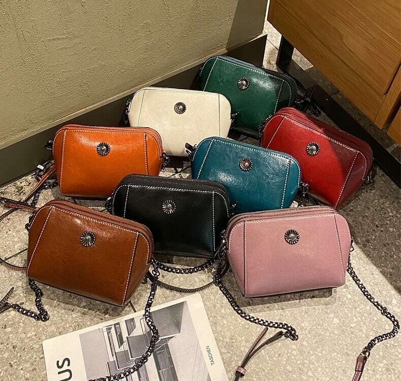 商品情報素材/材質本革(スプリットレザー)カラーブラック、ホワイト、レッド 、ブラウン、ブルー グリーン パープル レトロキャメルサイズ/寸法横幅:約20cm高さ:約14cm幅(マチ):約8cm肩紐(調整可能):約105〜125cm開閉:ファスナー素材:本革(スプリットレザー)ポケット本体収納内ポケット1カ所外ポケット2カ所その他商品説明シンプルなスクエアフォルムのショルダーバッグを、上品なスプリットレザーでご用意いたしました。