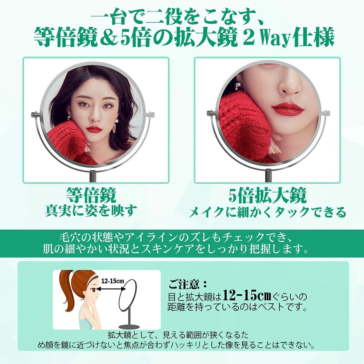 【20%OFFクーポン配布中 8/19日20:00~8/23日01:59】卓上 ミラー 化粧鏡 等倍&5倍拡大鏡両面 360度回転 倒れにくい置き型 ミラースタンド 女優ミラー 卓上 鏡 化粧ミラー 化粧 卓上鏡 両面化粧鏡 スタンドミラー メイクアップ 人気 プレゼント日本語取扱説明書付き