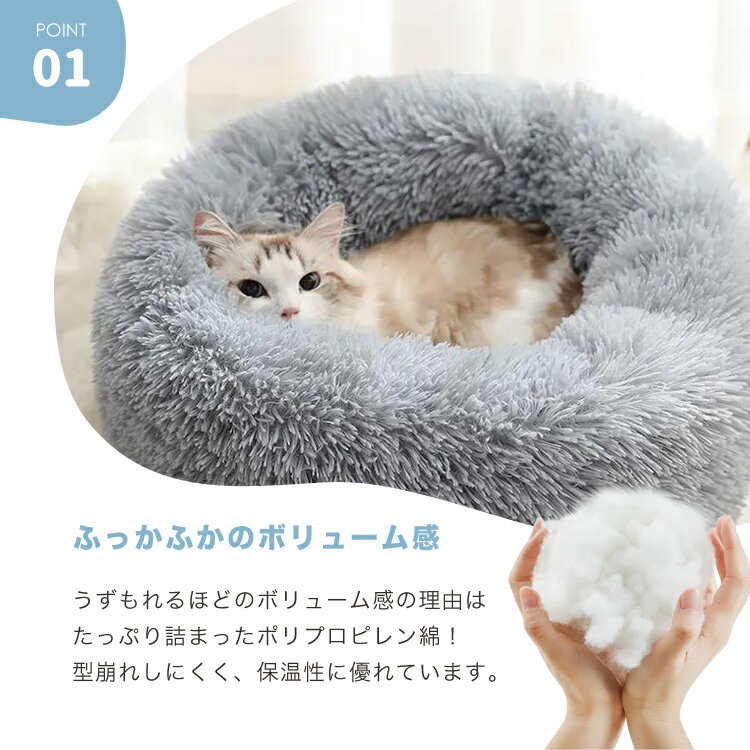 【ネコが安心して眠れるフワフワベッド】ペットベッド ふわふわ ネコ 犬 ペットシーツ カドラー 直径50cm 布団 ペット クッション ハウス イヌ 超小型犬 猫 小動物 あったかグッズ ペット用品 ボア もこもこ やわらか プレゼント ギフト 贈り物 誕生日 送料無料