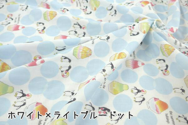 ダブルガーゼ生地 3色 ペンギン 約108cm幅×50cm 綿100% クールブリーズ加工 水に溶けると熱を奪うという キシリトールを含んだこの素材は、 汗や湿気を吸収し、ひんやり感を感じさせる効果があります。