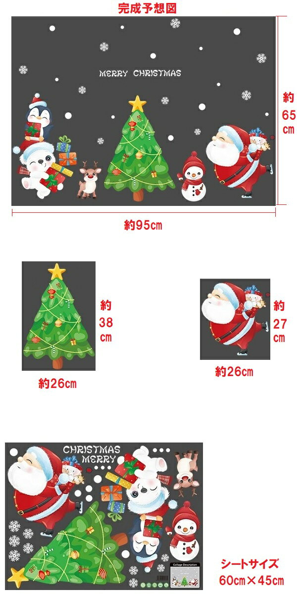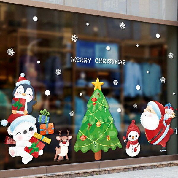 ウォールステッカー クリスマス クリスマスツリー サンタクロース トナカイ ステッカー おしゃれ ウィンドウ ガラス 装飾 サンタ 窓 オーナメント 冬 壁シール 大 飾り 星 雪 壁 壁紙 雪だるま インテリア 雑貨 雪の結晶 赤 緑 鹿 プレゼント ペンギン お店 christmas ボール