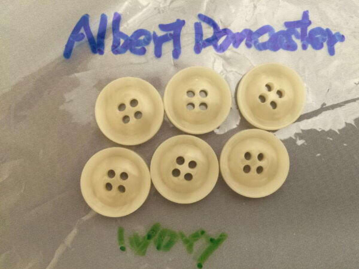 (本体のみx6) Item Button of Brace Model Albert Doncaster Size28BL(Approximately 18mm) Material Plastic Col Ivory 商品画像は、明るさや光の反射で実物と色合いが変わって見えることや パソコン環境(モニター)によって色が異なって見える場合がございますので お気になられる方は予め質問欄でお尋ね下さいませ。
