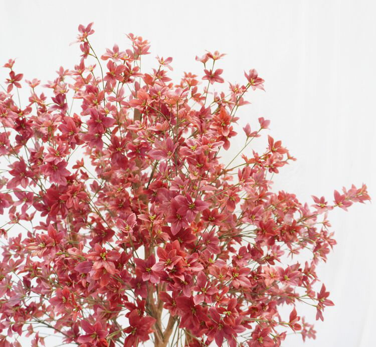 造花の赤い葉が横幅約120cm~130cm程にふんわりと大きく広がっている樹形が特徴です。