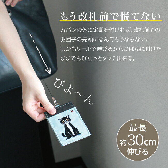 パスケース パスポーチ 定期入れ かわいい ネコミミ 猫 雑貨 ポーチ かばん 通勤 通学 社員証 リール付き 高校生 中学生 女の子 icカード 2枚 子供用 レディース キャラクター ノアファミリー