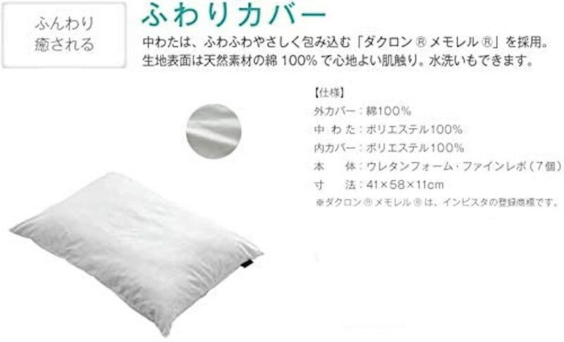 【商品名】ファインレボ ピロー ホワイト I FIT ふわりタイプ 【ブランド】ASLEEP(アスリープ)【商品サイズ】幅58×奥行41×高さ11cm梱包サイズ:57×14×40cm【重量】1.6kg【材質】外カバー/綿100%、中わた/ポリエステル100%、内カバー/ポリエステル100%、本体/ウレタンフォーム、ファインレボ7個【その他】型番:DC0301AX原産国:日本製配送会社:ヤマトホームコンビニエンス必ず搬入経路をお確かめの上、ご注文ください。