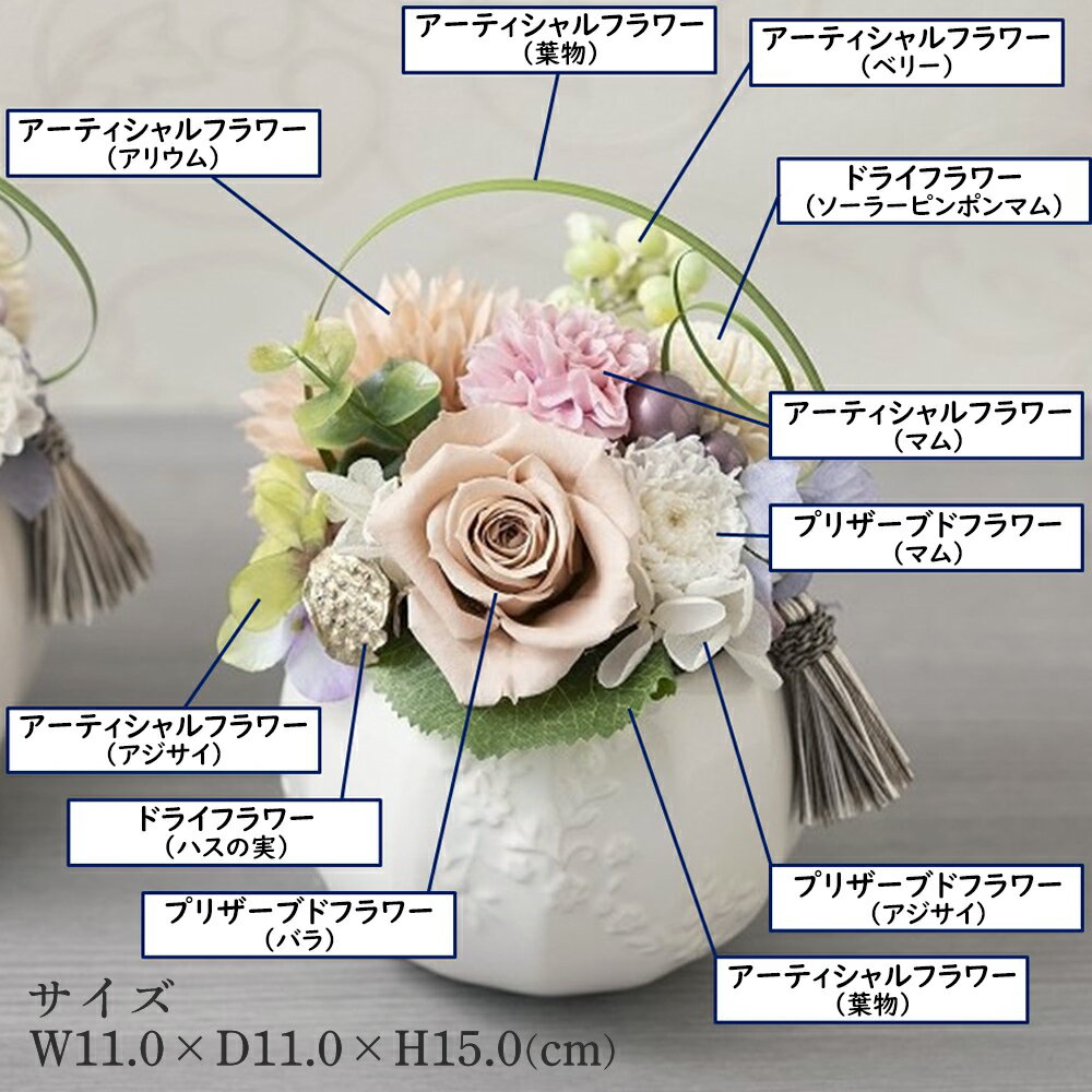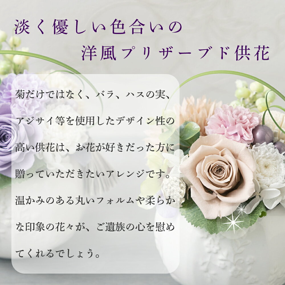 [プリザーブドフラワー]淡い色合いの洋風供花は、お花が好きだった方に贈っていただきたいアレンジです。