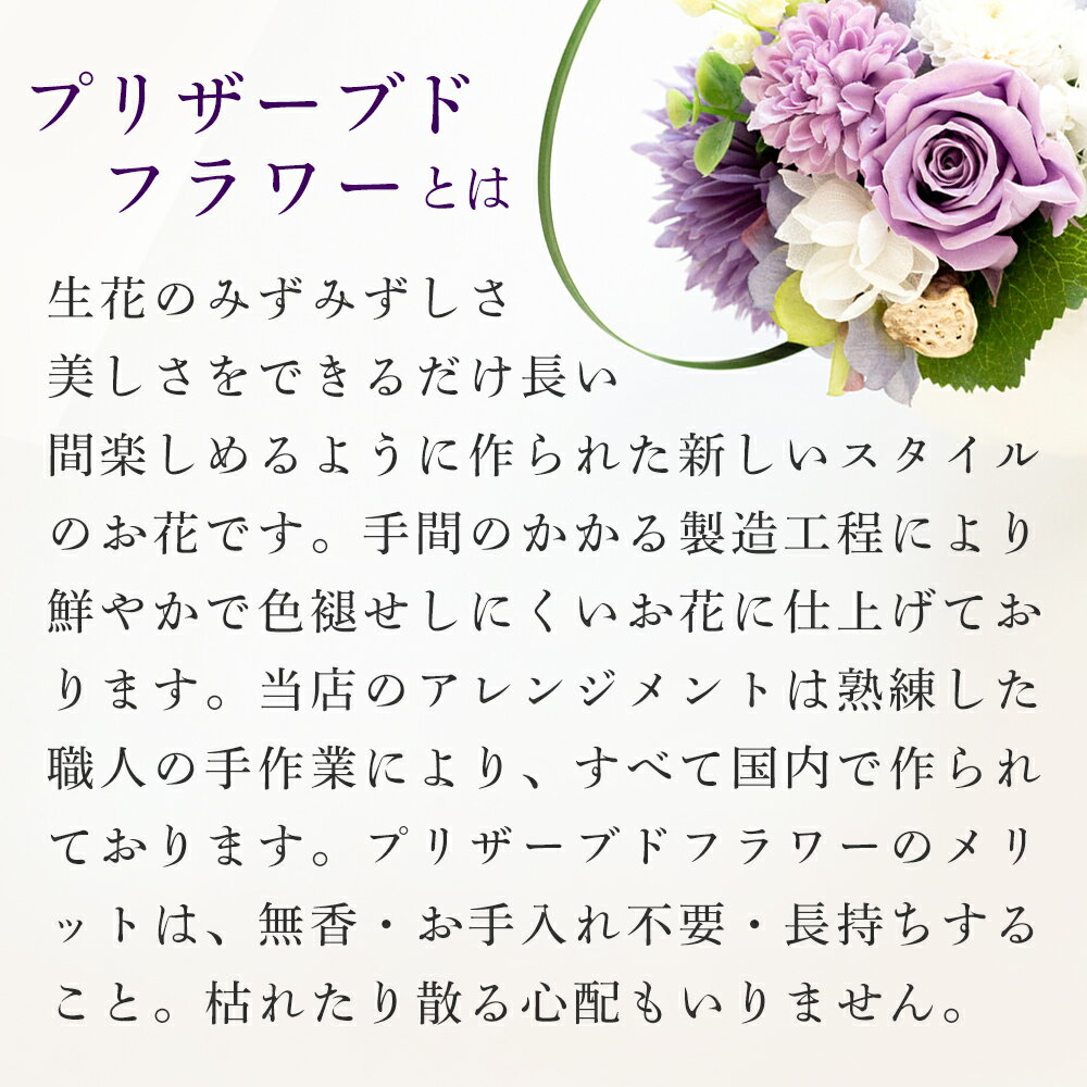 ●箱サイズ(cm):20.4×16.6×4.4 ●宅配時の状態:常温 ●賞味期限:製造より 42日 ●7大アレルゲン:卵、乳、小麦 関連商品 ■『プリザーブドフラワー 和風 モダン』のその他の商品は こちらから >> 様々なご用途でのご利用を おすすめ しております。