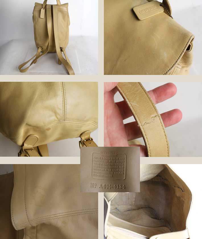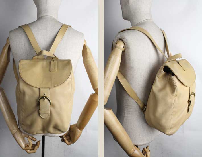 1990年代コーチ COACH中型リュック(バッグパック) 肉厚な牛革(カウハイド)が使用です!! 1. 色はキャメル系のベージュです。