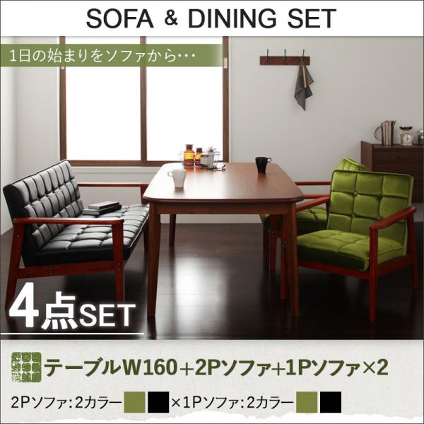 【最大2000円OFFクーポン※期間限定】送料無料 ダイニング4点セット テーブル+2Pソファ+1Pソファ2脚 幅160cmダイニングテーブル セット ソファ 食卓セット デザイン おしゃれ かっこいい レトロ ヴィンテージ カフェスタイル 北欧