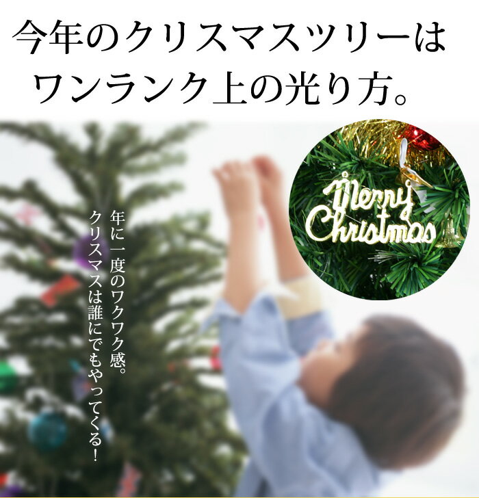 聖夜を鮮やかに演出する7色のグラデーション! 昼は鮮やグリーンがにぎやかにクリスマスムードを演出! 夜はライトアップすることで ファイバーの1本1本が輝き、幻想的な雰囲気に。