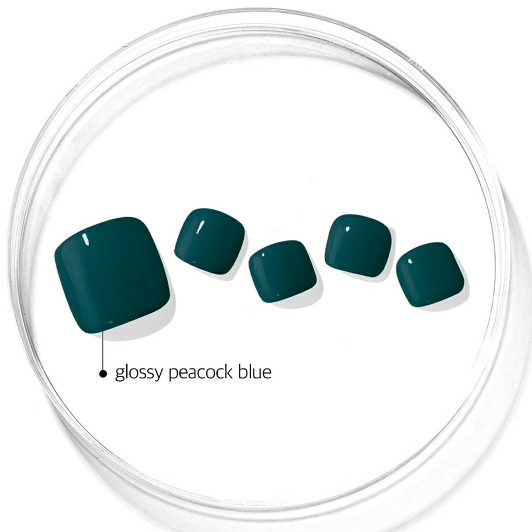 ピーコックブルーのフルカラーペディキュア 緑がかった深く濃いピーコックブルーを単色でムラなく仕上げた『ohora』のベーシックアイテム。